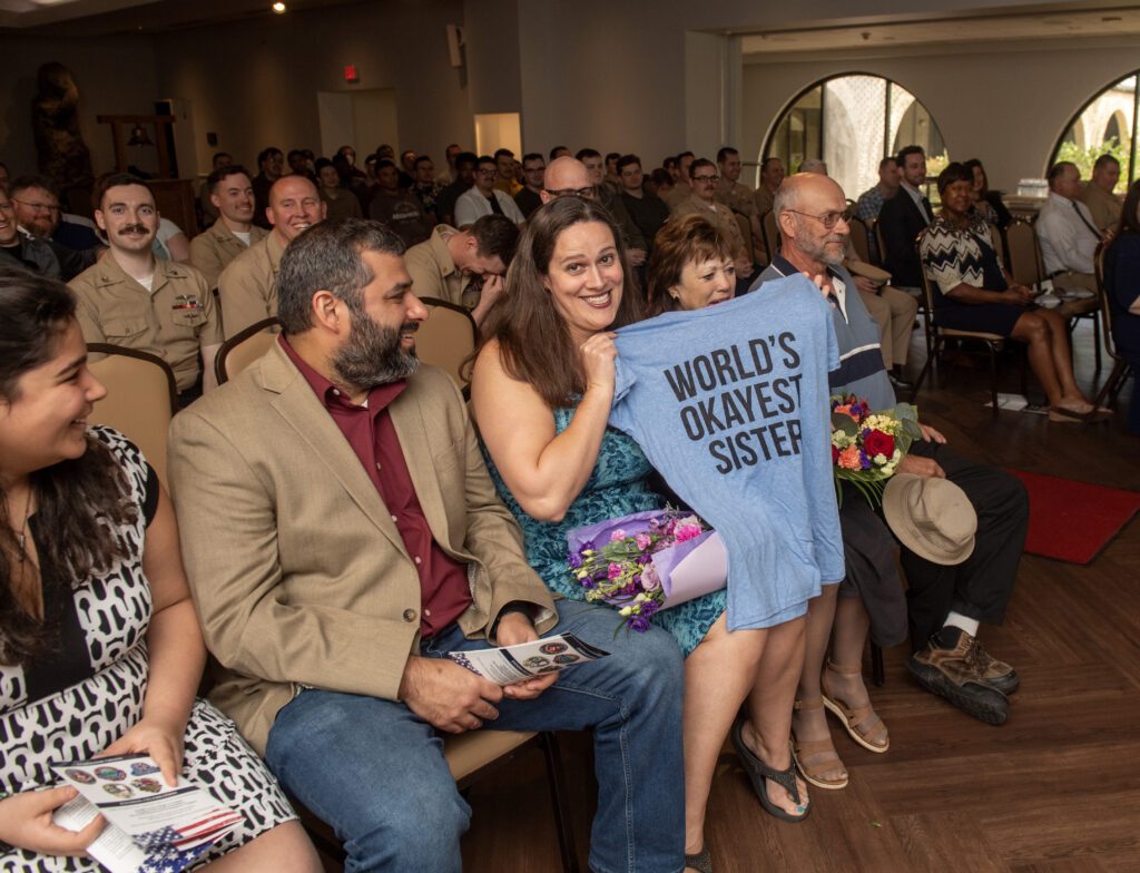 Almost every seat in the room was taken up by guests eager to share such an amazing moment with their friend Keith. Throughout the ceremony, I increasingly understood what made Keith so special. He found moments between the ceremony’s serious nature to poke fun at his colleagues by gifting them a step stool and a megaphone to help them be taller and louder. Keith also gifted his family beautiful bouquets, toys for his two children, and his sister a “world’s okayest sister” t-shirt.