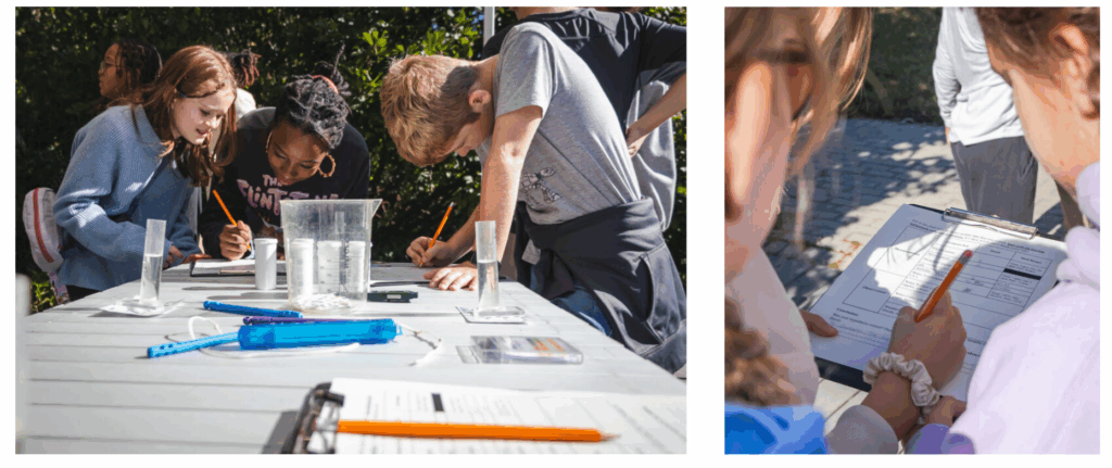 At another station, students measure the abiotic factors of the Lake: turbidity (how cloudy the water is), nutrient levels, pH, and temperature. They run tests, record data, and compare their results to what’s considered ideal for a healthy lake. Through this, they learn how abiotic factors affect the species living in the Lake and how changes in water quality can throw the entire ecosystem off balance.