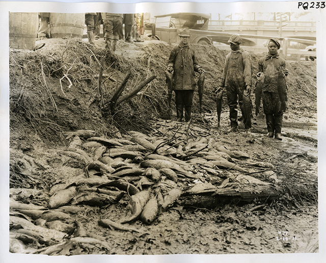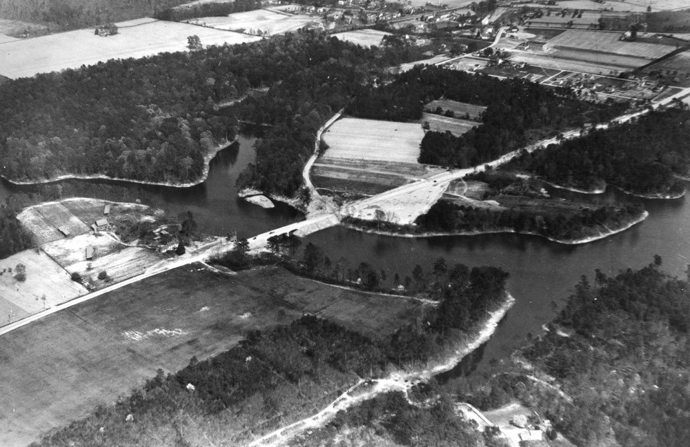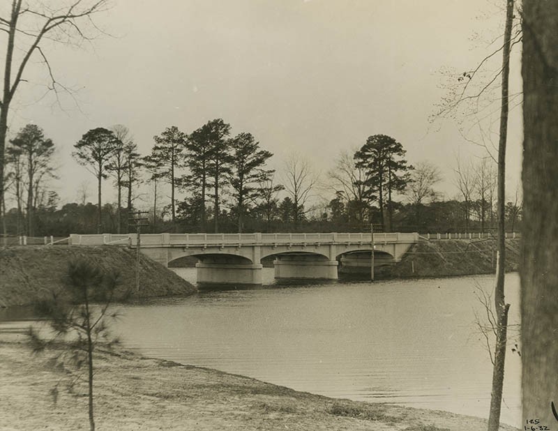 Construction on the dam that would hold the Lake began in November of 1930 by the Virginia Engineering Company and was officially closed in February of 1931. As work on the Dam progressed, the Company turned their attention to the dam at Causey’s Mill. The Pond had been dammed since the late 1600s and as such had acquired a lot of fish over the years. Upon its dam break, the Museum sold 450 German carp, 250 catfish, and four barrels of gizzard shad for $115. We kept 350 bass for the newly formed Lake. The Milldam was removed and a bridge over the Park was put in its place.