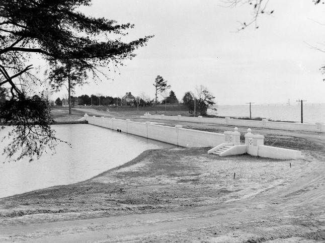 Huntington envisioned one continuous lake, therefore, Causey’s Mill and its adjoining pond were purchased in July of 1930. The pond was purchased from Warwick County. Collis Huntington, Archer’s father, purchased the Mill and its pond in 1890 in the hopes that it could serve as the County’s water reservoir. That plan was quickly abandoned in favor of a larger reservoir in Lee Hall.