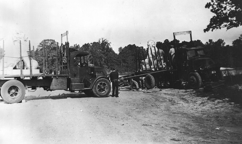 The Lions! We can’t officially call it Lions Bridge if there are no lions guarding it! Anna Hyatt Huntington, Archer’s wife, designed the lions on a smaller scale and Robert Baillie of Closter, New Jersey scaled them up. All four were completed and installed in October of 1932. Can you imagine seeing these drive past you on the road?