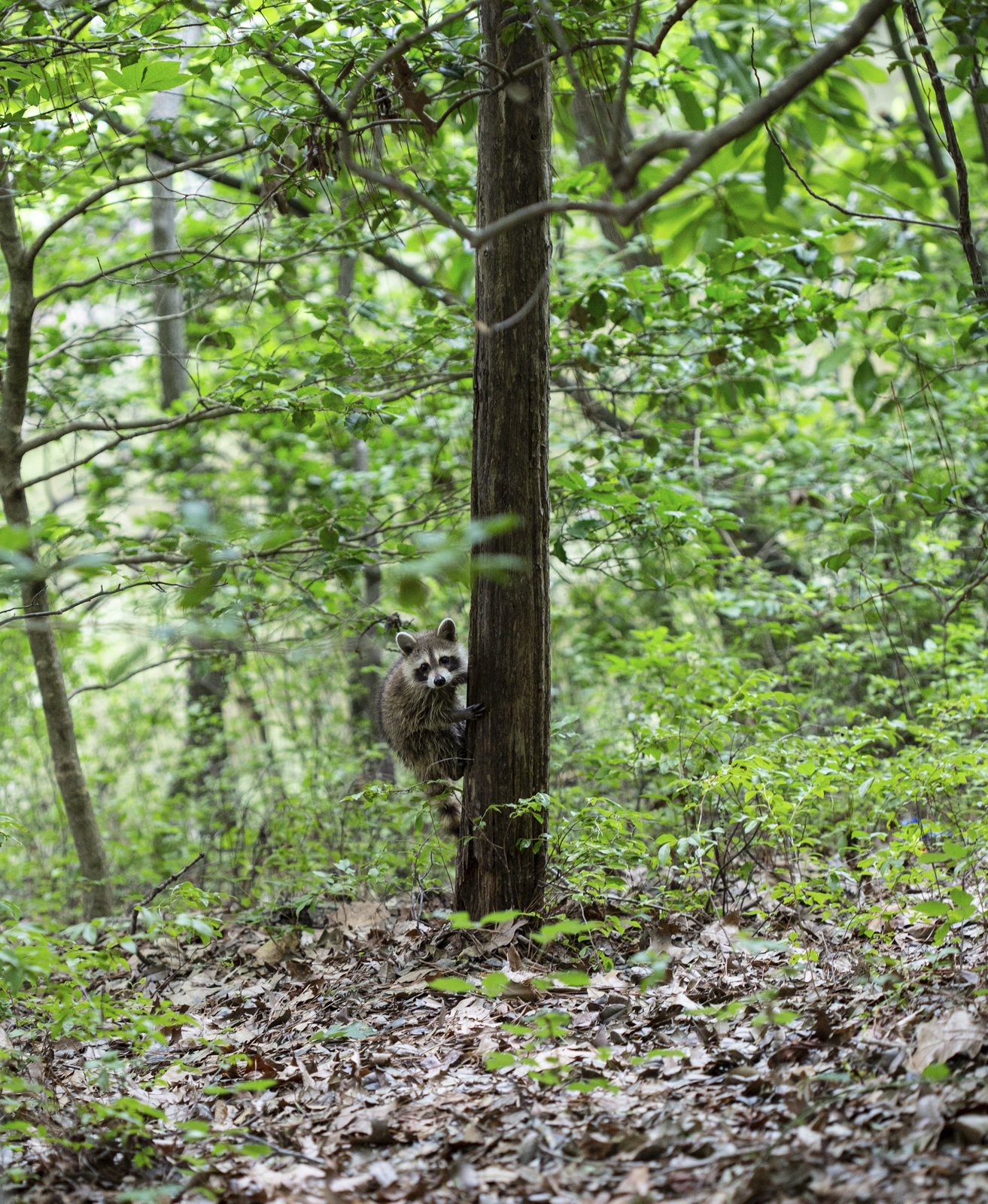 It was a chilly morning at The Mariners’ Museum and Park as I went on with normal opening procedures. The sun had not yet come up and I had just finished unlocking the breezeway and Huntington Room before working my way up to Security Control. I breached the second set of glass doors when I sensed a presence staring at me, from where yet, I did not know. I continued to walk into Control and there it was, the ring tailed bandit on the other side of the exterior door, peeking in at me. I couldn’t help but feel excited. Raccoons are one of my favorite creatures we have here in the Park!
