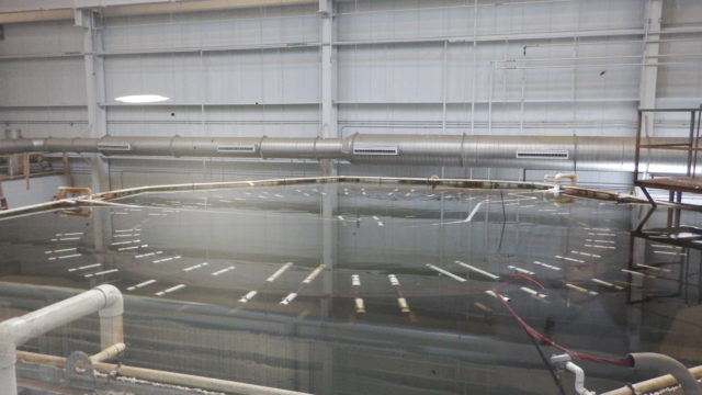 The turret tank holds 90,000 gallons of solution. We start building up water a week before filling so that we will have enough on hand. Did you know that we have outdoor tanks behind the lab which can hold all of the old solution or the new water?