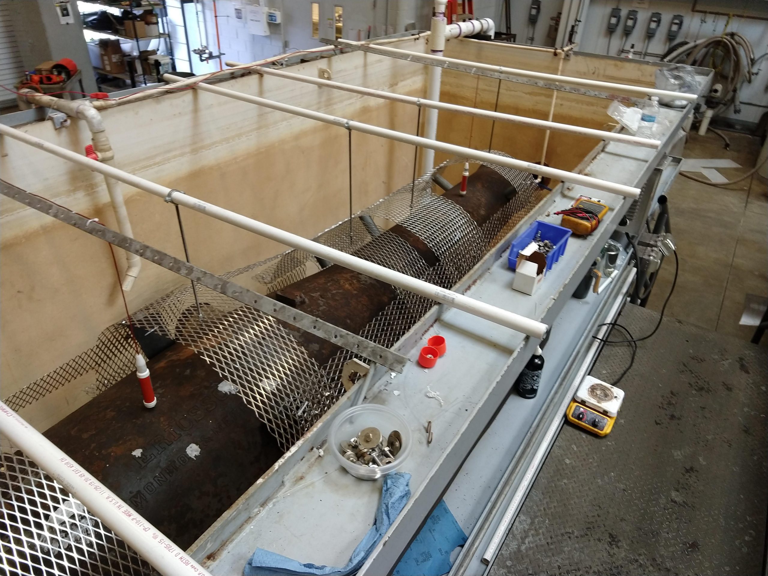 Not only are there a lot of electrochemical treatment set-ups that need constant attention in the “wet lab” and outdoor tanks, but environmental conditions in dry object storage also require our steadfast attention.