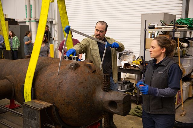 Last month, we were able to complete one of the last major steps in the conservation of USS Monitor’s two XI-Inch Dahlgren shell guns: boring concretion out of the barrels. Material Culture Specialist Hannah recently showed off what we found in this process (coal is, indeed, cool), but why clean the gun bores to begin with? And how do you actually go about doing that, anyway?