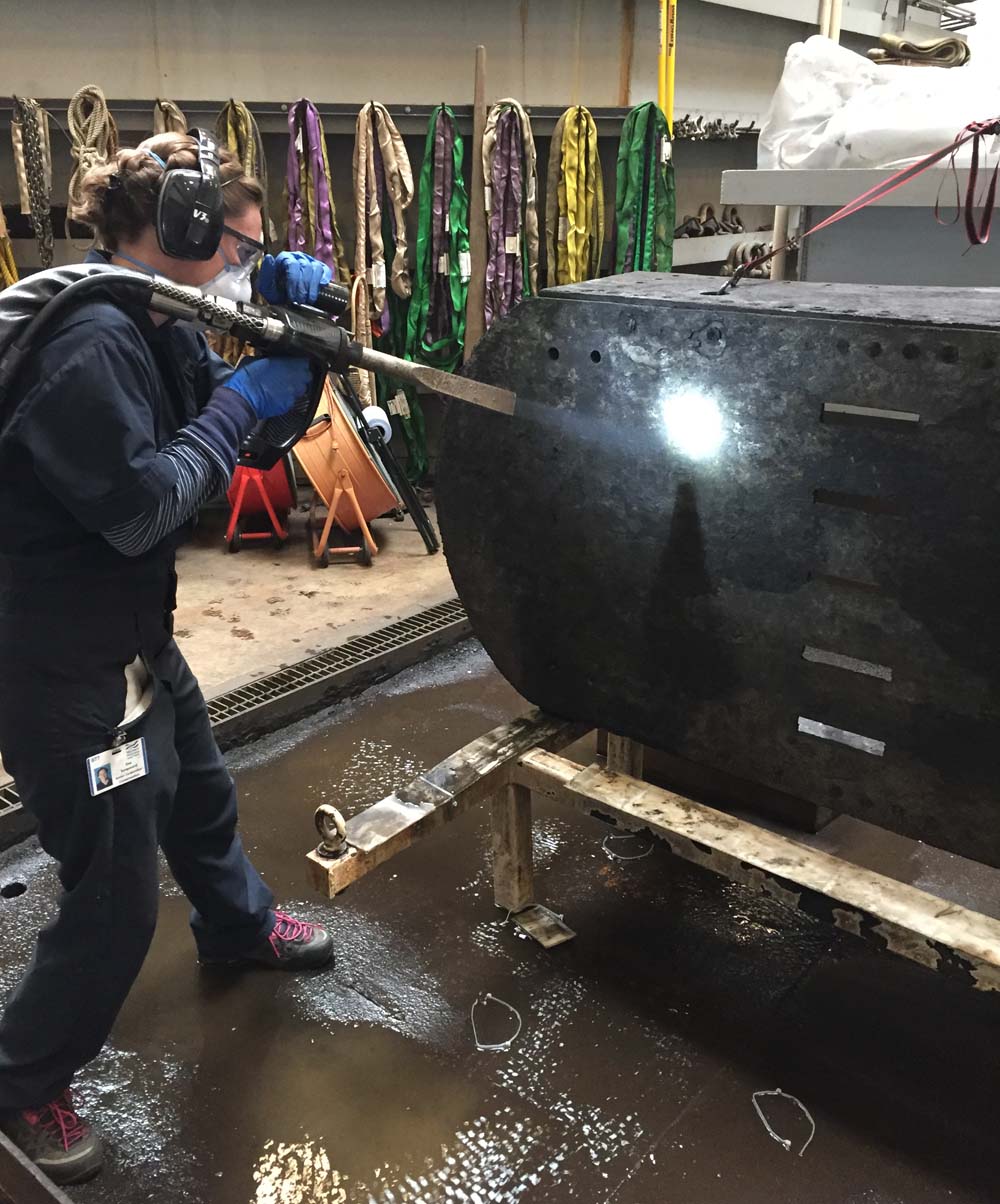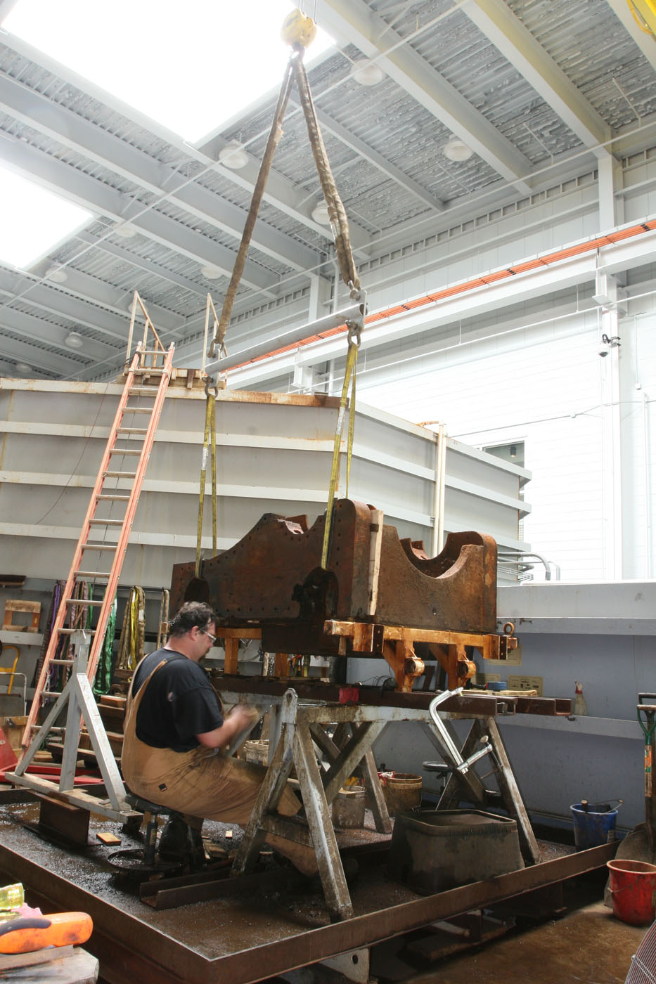 - And last but not least, the carriage is approximately the size of a compact car and weighs about a ton (literally!). Working on the object required draining its tank, rinsing it, using the overhead crane to lift the object, and then moving it back and refilling the tank at the end of the day (not something you start on a Friday afternoon!).