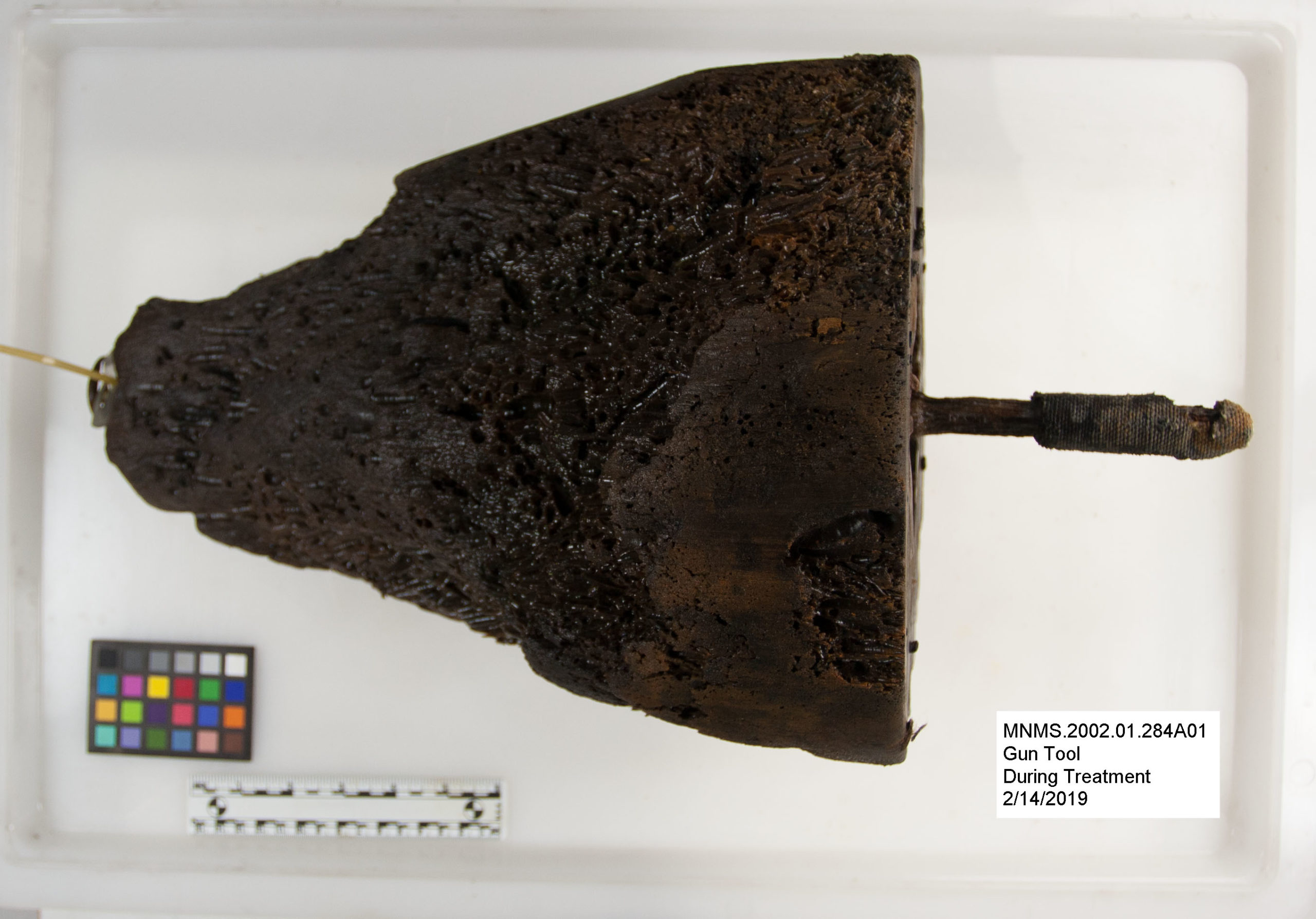 In this blog post we’ll continue the discussion about one of USS Monitor’s gun cleaning tools, and the conservation treatment it has undergone.