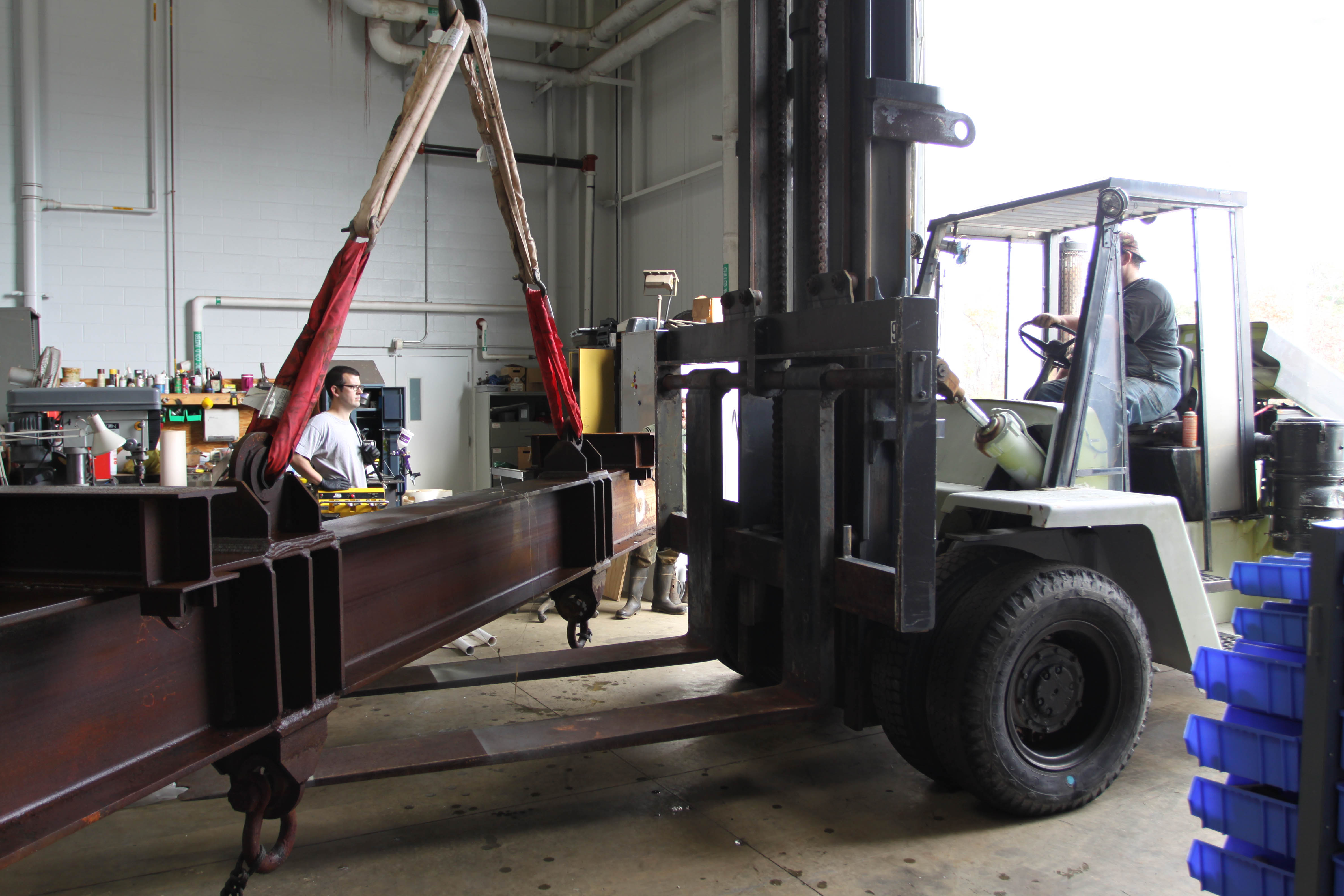 Once the beam was away from the engine tank, we moved it across the lab and Gary used the heavy duty forklift to carry it out of the building.