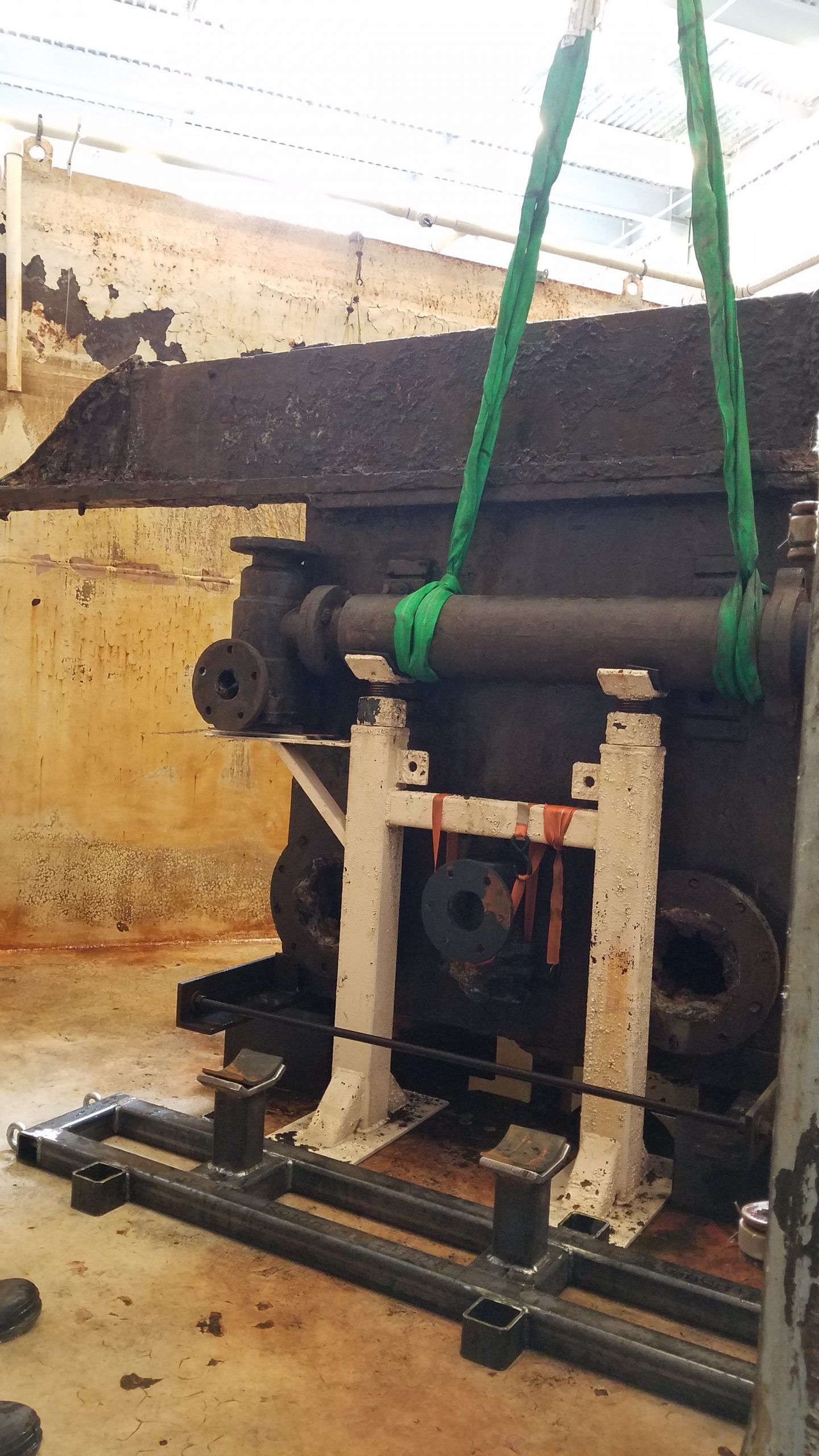 So we are on hold with this particular project at the moment but look forward to achieving this major step which will finally allow us to flip the condenser right side up!! The condenser will then become the largest piece of USS Monitor to be standing in its original position!