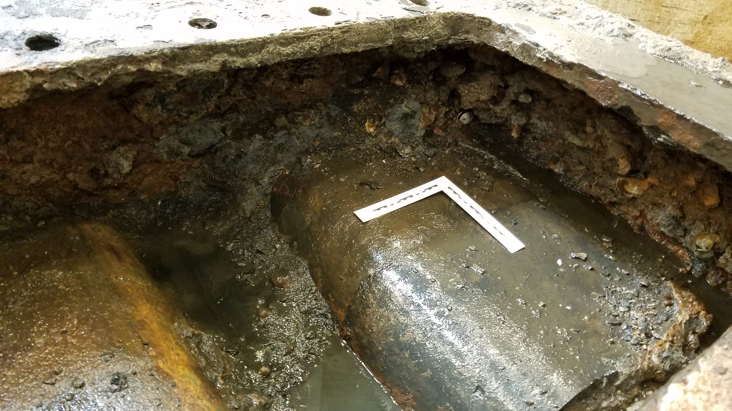 When the US Navy and NOAA archaeologists decided to recover the emblematic Monitor gun turret from the ocean floor, the entire engine room was in the way and therefore had to be recovered first. This included the main engine, ventilation engines, auxiliary pumps and the condenser. Now, in order to conserve these complex pieces of machinery, a large part of our job is to disassemble them. This allows for appropriate treatment of the different materials (iron, copper alloys and gaskets have different conservation requirements), while more exposed surfaces provide better extraction of harmful salts and thorough surface cleaning. Disassembly can be quite time consuming but there is no way around it! In 2019, one of the conservation team’s projects was to further disassemble the condenser (yes, parts had already been separated).