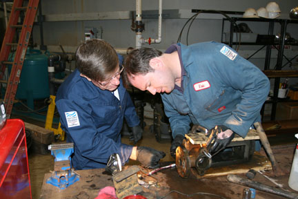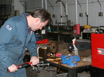 Eric and Gerry continued work on disassembling the Port and Starboard Worthington pump steam chests on Monday. The retaining nuts were removed from the valve damping pistons on both pumps using a digital torque wrench.