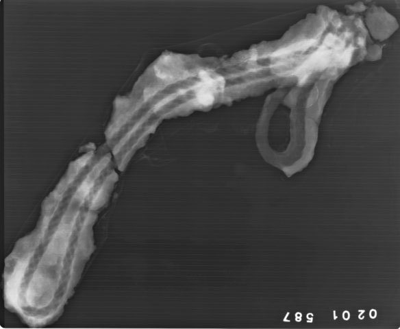 X-radiography is a great tool for us in the lab. It provides unique information about artifacts that we would not know otherwise. Not only does it answer questions about technology and the archaeology of the ship, but it has stopped a number of headaches over the years when looking at a concretion and wondering just where to start.